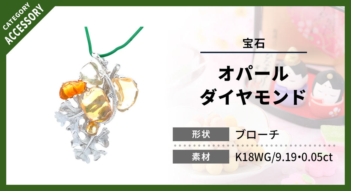 オパール・ダイヤモンド ブローチは、宝石の品質やデザインによって査定評価が変動します。